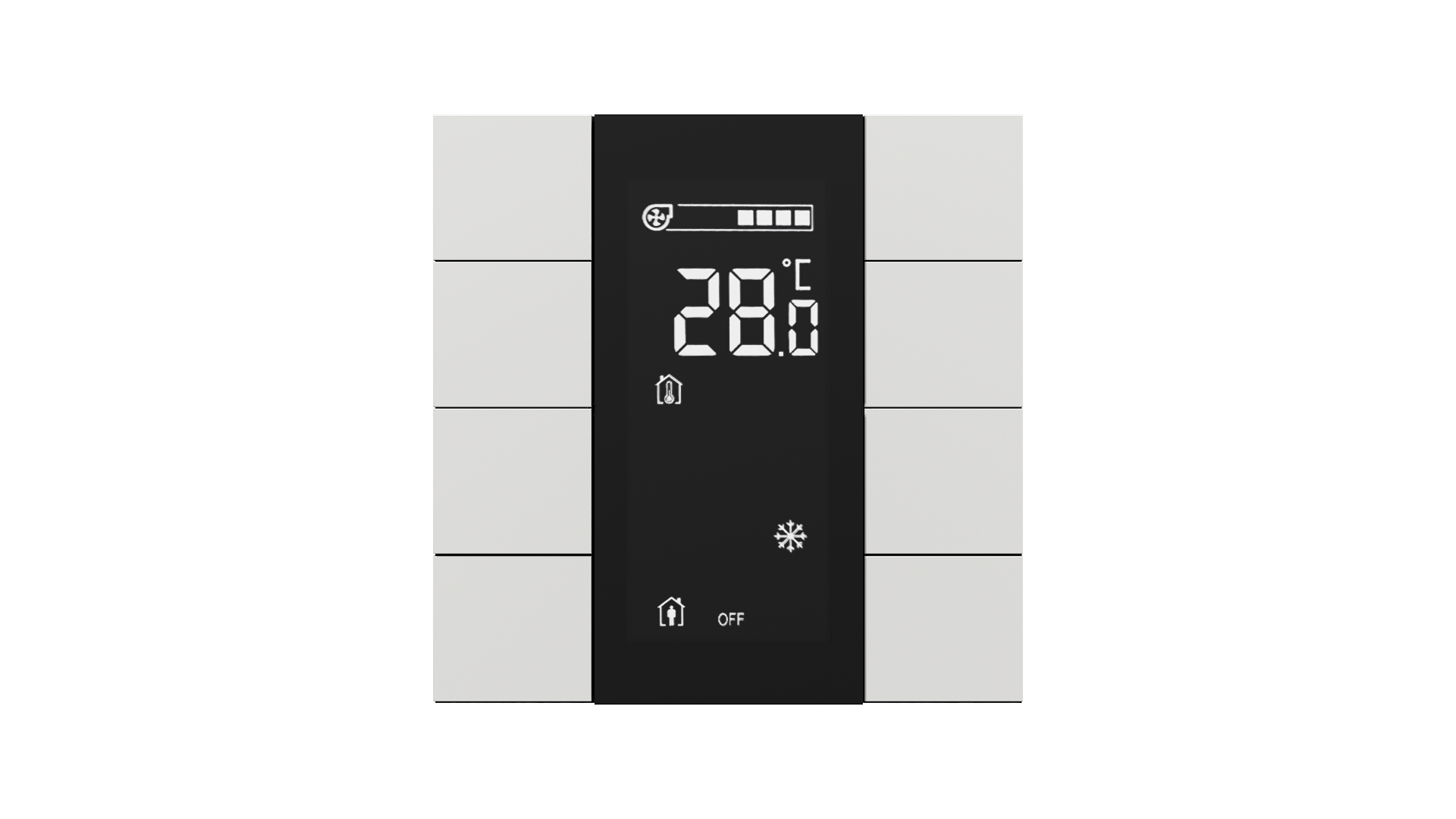 The device provides an adjustable LCD backlight and LEDs intensity for user comfort. The product range has 16 different models with AQI, without AQI, with LCD and without LCD. All models can be programmable with the same ETS database, which provides efficient commissioning.